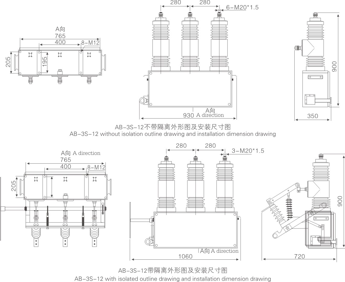 工頻耐受電壓(1min):(濕)(干)相間、對地/斷口 | kV | 42/48 | 52;65/79 | 80 95/95 |